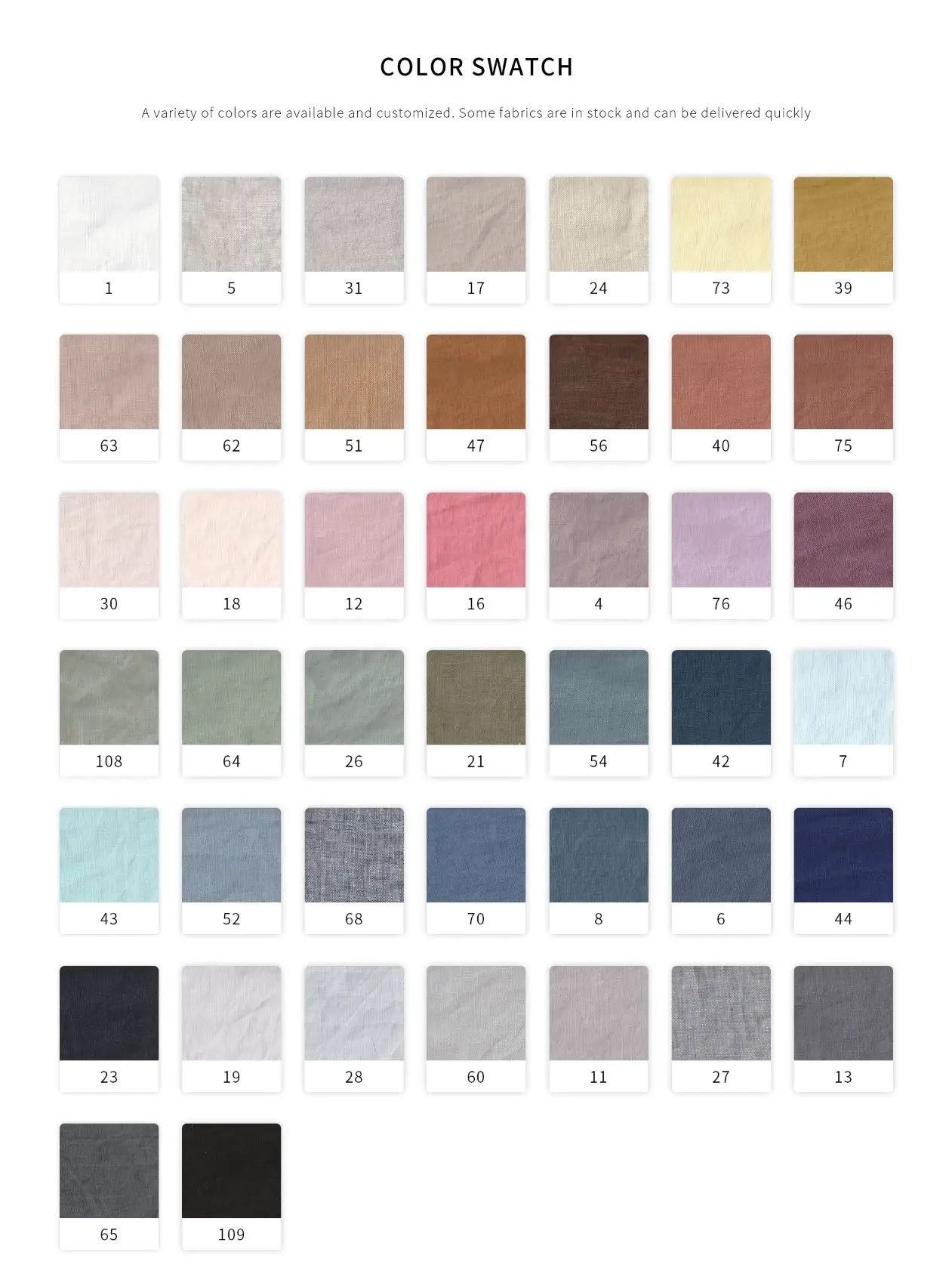 Material | 100% linen(Flax is imported from France or Belgium) | ||||||